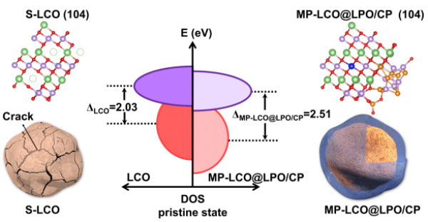 此外,研究人员结合原位X射线衍射技术、GITT测试及DFT密度泛函理论计算结果,分析了高压钴酸锂充放电过程中的反应机制。该研究设计的多重表面改性与体相掺杂策略,为退役钴酸锂直接升级再造为下一代高性能正极材料提供了指导。
